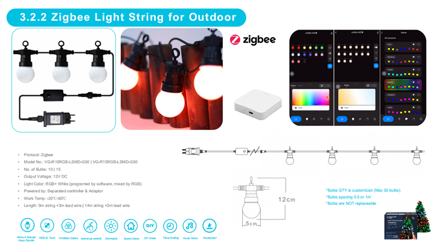 VagaryLight has developed the 1st version of Zigbee string lights on Oct.
